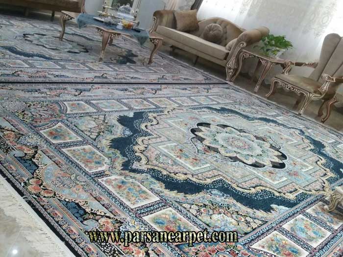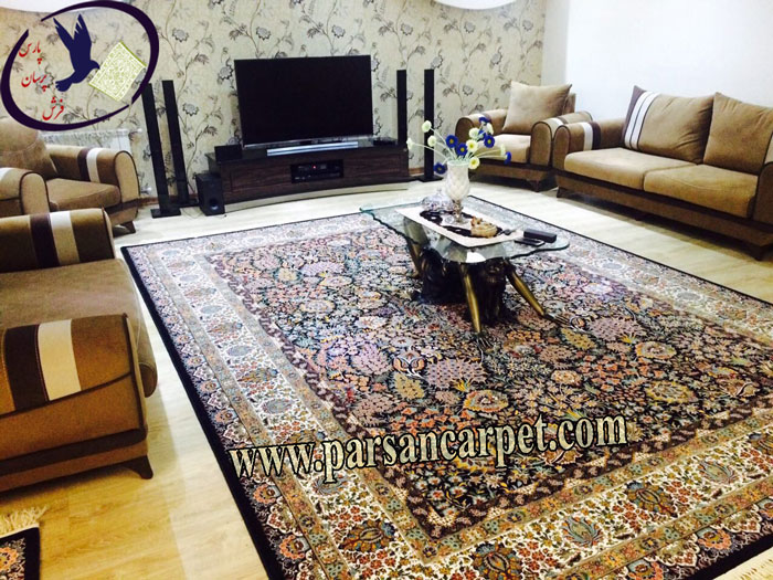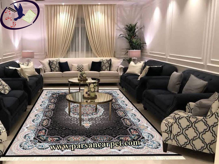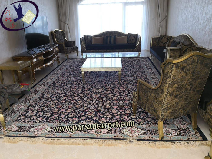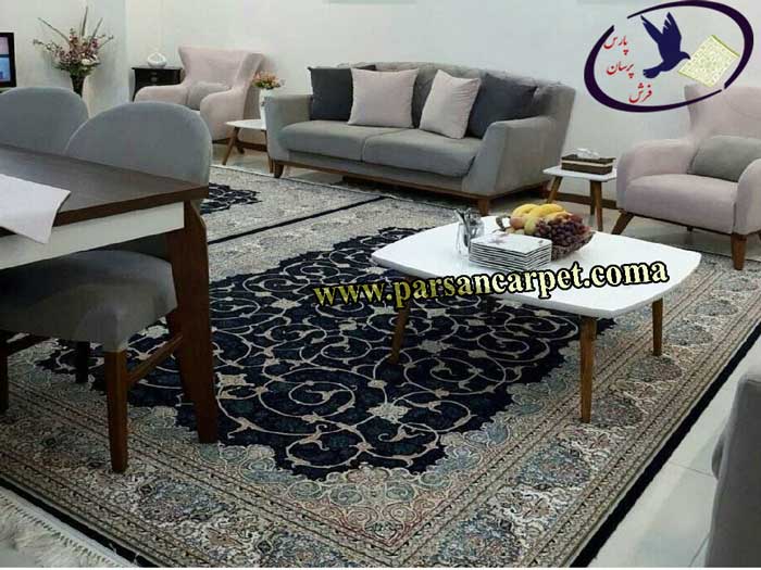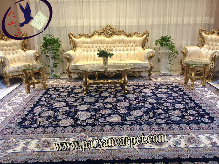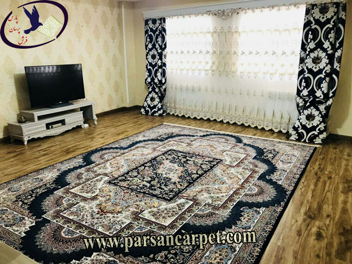 برای اینکه بتوان فرش سرمه ای رنگ را در منزل استفاده نمود، لازم است که فضای داخلی پذیرایی بزرگ و دلباز باشد و نور کافی در منزل وجود داشته باشد. زیرا فرش سرمه ای رنگ که زمینه تیره ای دارد، برای اینکه به خوبی دیده شود و فضا را تاریک نکند نیاز به نور کافی دارد. اما اگر فضای داخلی منزل شما دارای نور کافی نیست یا کوچک است و همچنان در انتخاب فرش سرمه ای رنگ دارید، بهتر است فرش سرمه ای رنگ با طرح خلوت و کم کار انتخاب کنید. یا اگر طرح آن شلوغ است گل های کار شده در آن دارای رنگ روشن باشند تا رنگبندی کلی آن روشن تر به نظر بیاید. به صورت کلی برای فضاهای کوچک با نرو کم فرش کرم رنگ یا فرش آبی روشن مناسب تر است. در تصاویر زیر شما مدل های زیادی از فرش سورمه ای که در منزل پهن شده است را می توانید مشاهده کنید و با توجه به دکوراسیون ها و رنگ و طرح فرش ها یک فرش مناسب برای خود انتخاب نمایید.