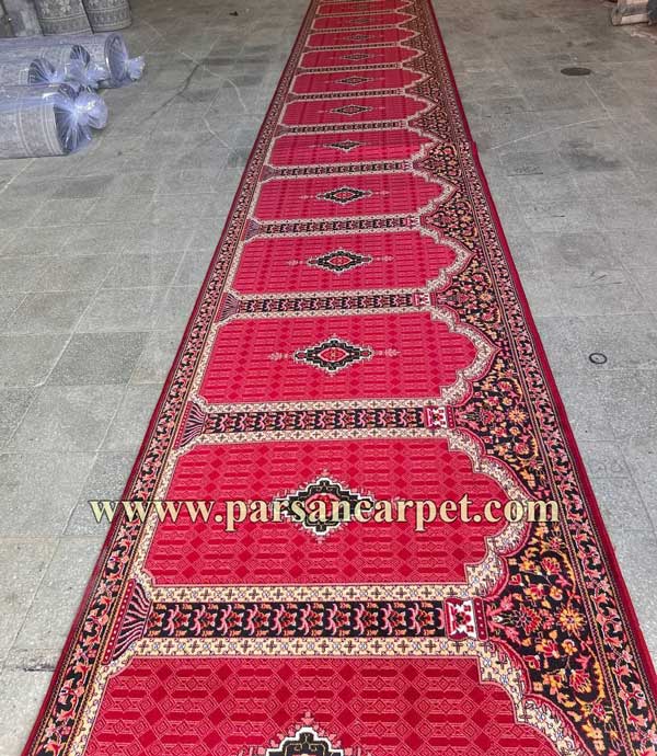 این مدل فرش محرابی مخصوص مسجد با طراحی دقیق، نقوش منظم و رنگبندی آرامشبخش تولید میشود. طرح محرابی کمک میکند صفوف نماز منظمتر شکل بگیرد، زیبایی بصری ایجاد شود و هویت اسلامی فضا تقویت گردد. این طراحی استاندارد باعث شده این محصول علاوه بر مساجد بزرگ، در نمازخانه مدارس، دانشگاهها، ادارات و حسینیهها نیز کاربرد گستردهای داشته باشد.