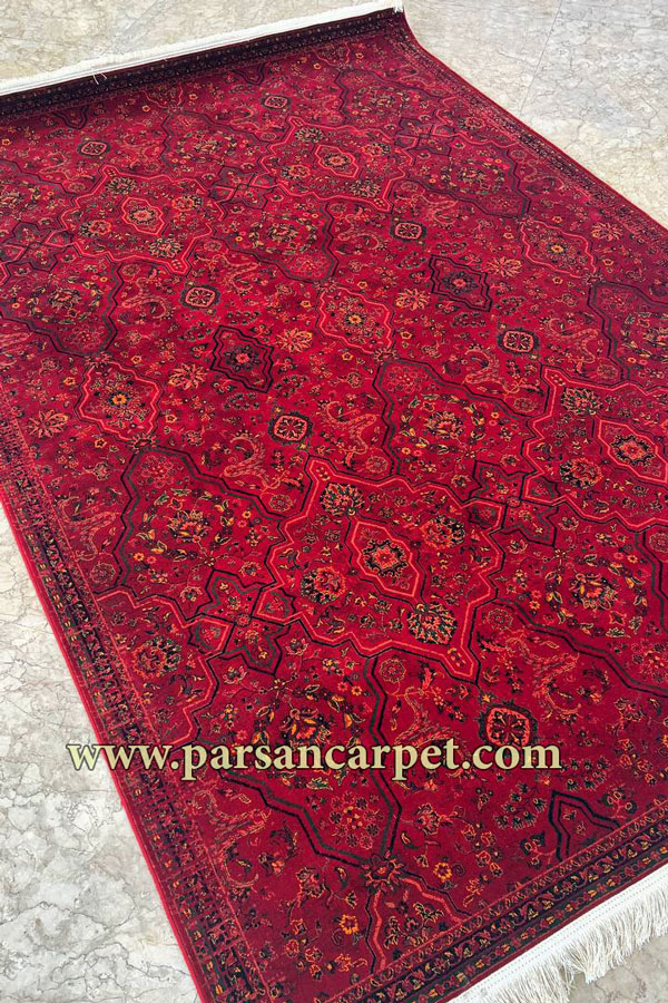 فرش 700 شانه سنتی طرح بلوچی کد 40061 از کلکسیون شهرزاد با رنگ قرمز لاکی و بافت ممتاز، تولید مستقیم از کارخانه فرش کاشان با قیمت مناسب، نخ اکریلیک با دوام و طرح سنتی اصیل از کارخانه عرضه شده است.
