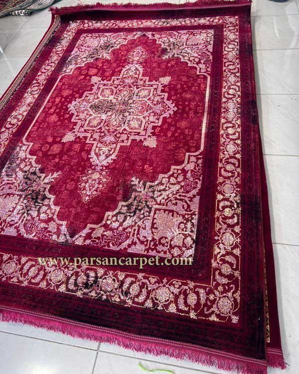 فرش ماشینی 700 شانه کاشان طرح هریس رنگ لاکی، با بافت سنتی و دستباف گونه ایرانی. خرید مستقیم و آنلاین با بهترین قیمت و ضمانت کیفیت کارخانه.