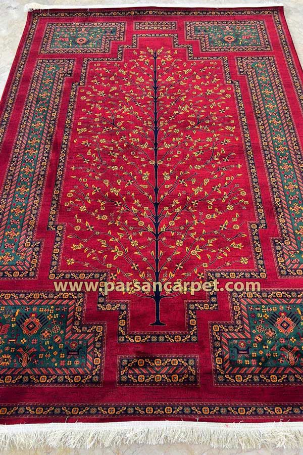 قیمت فرش ماشینی بلوچی طرح درختی با بافت 700 شانه سنتی در کارخانه کاشان؛ خرید مستقیم از تولیدی با کیفیت بالا و طراحی اصیل ایرانی.
