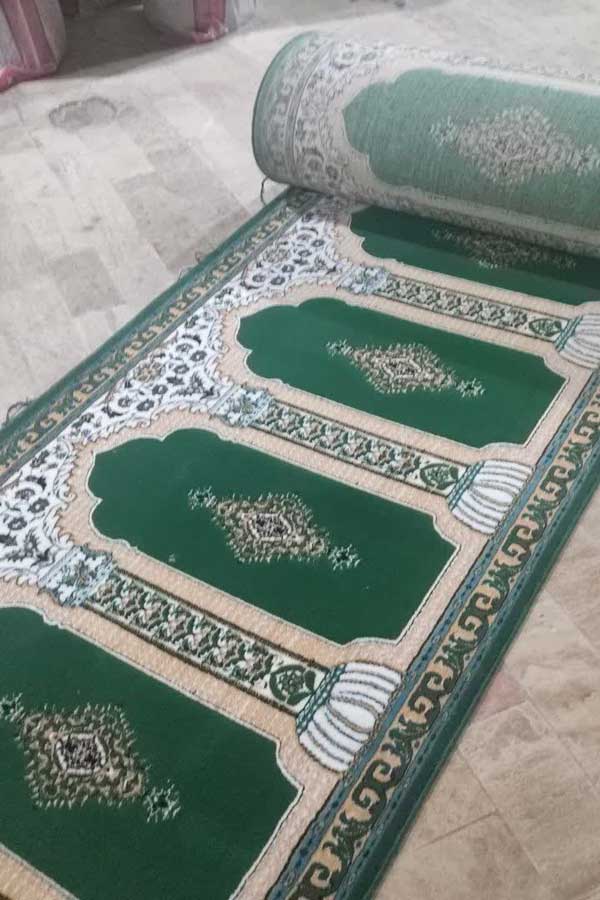 قیمت فرش سجادهای ارزان پلیاستر در طرح محرابی سبز با کیفیت عالی و دوام بالا. تولید و فروش مستقیم از کارخانه کاشان با امکان خرید عمده برای مساجد و نمازخانهها.