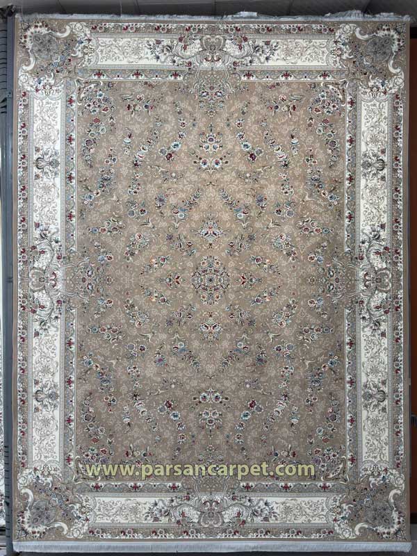 فروش ویژه فرش 1200 شانه تمام اکریلیک کاشان مدل ارغوان بژ، با تراکم بالا، بافتی ریز و ظریف، طراحی کلاسیک و قیمت مستقیم کارخانه. ارسال فوری به سراسر ایران از کارخانه کاشان.