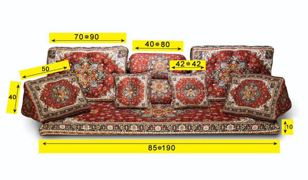 پشتی عربی و شاهنشین خلیجی کاشان به صورت 7 تکه و 9 تکه با دوخت دقیق، پارچه ترمهای مرغوب و طراحی اصیل ایرانی تولید میشود. خرید مستقیم از تولیدی با قیمت منصفانه و ارسال سریع به تمام نقاط کشور.