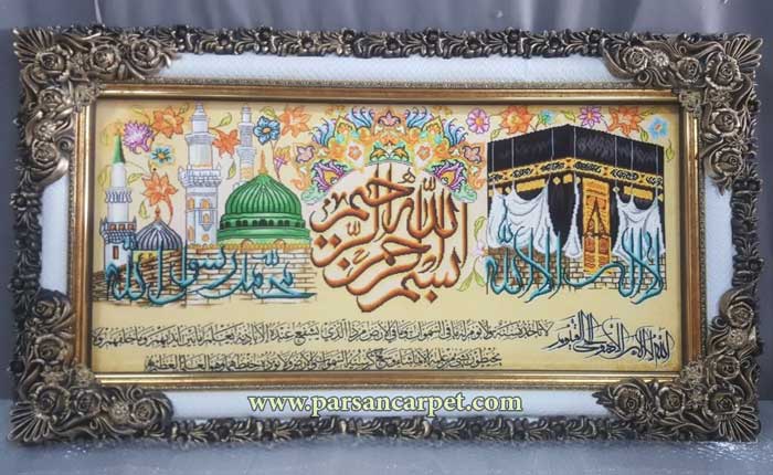 خرید اینترنتی جدیدترین مدل تابلو فرش عرضی طرح آیه قرآنی با قاب سفارشی برای دکوراسیون شیک و معنوی از تولیدی کاشان با قیمت مناسب.