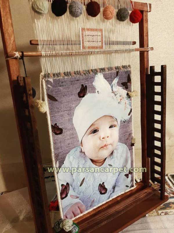 خرید تابلو فرش چهره روی دار قالی با چاپ سابلیمیشن عمقی روی فرش 1200 شانه، تولید در ابعاد دلخواه، نصب روی دار و کیفیت بالا با قیمت مناسب و پست رایگان.